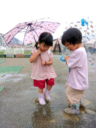 フワフワ ゆらゆら 浮かぶシャボン玉に手を伸ばし