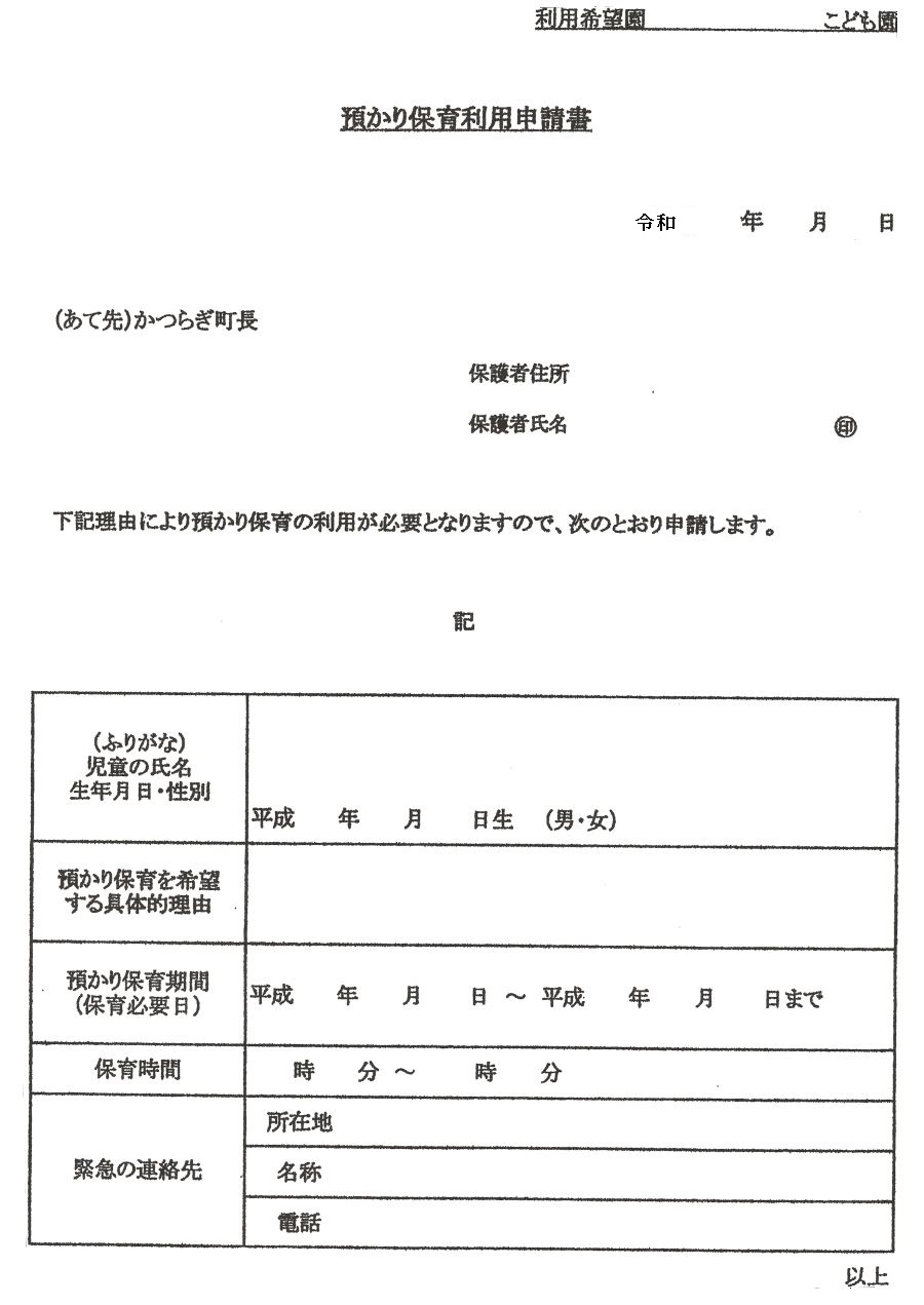 右記の申請書を提出していただいたら午後2時から午後4時半までこどもさんをお預かりできます。