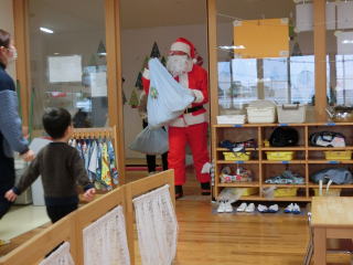 今年度もサンタクロースが来てくれました。ソーシャルや色々な安全面を考慮しての登場です。