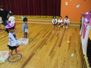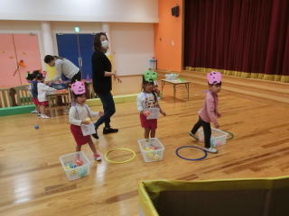 第二部 3歳児 運動遊び(玉入れ)「力を合わせて集めよう!」